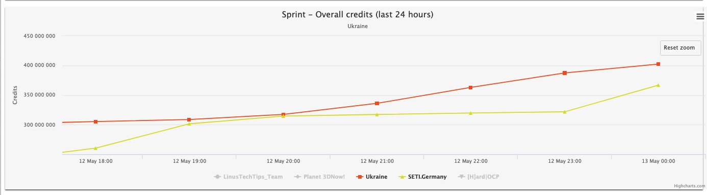 QUOTE Hello rilian, congratulations on your very strong result at this year's BOINC Pentathlon. We at SETI Germany are really impressed by your performance and it will be hard for us to compete against you next year. Keep up the good spirit. Best wishes from Germany to the whole team Ukraine! roundup Team Captain SETI.Germany WCG QUOTE Rank 5 Ukraine (5-5-5-4-5) Previous year: #11 / Total appearances: 16 Ukraine has been part of the Pentathlon field from the very beginning, flying under the radar for most of the time. The most outstanding result they had ever achieved in a Pentathlon was #8 in 2022 and #9 in 2011. That has changed this year. They collected their points with an incredible consistency, with the Sprint being a small highlight. We will see if they can confirm this result next year. PDW: QUOTE Well done to all the other team members on what I'm assuming is the team's best ever placing. Congratulations on the co-ordination and recruitment as well. -------------------- |